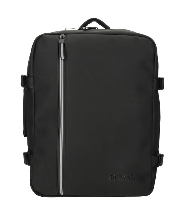 De Enrico Benetti Bergen fietsrugzak in zwart is de ideale metgezel voor dagelijkse fietstochten, woon-werkverkeer én reizen. Met het compacte formaat van 40×30×20 cm voldoet hij aan de IATA-richtlijnen en past hij als underseater moeiteloos onder de vliegtuigstoel. Zo fiets je naar het vliegveld en stap je direct aan boord – zonder extra bagagekosten.