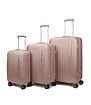 Van binnen zijn de koffers netjes bekleed. In de deksel kunt u de bagage vastzetten achter een groot ritsvak en ook het bodemvak is voorzien van een afsluitbaar ritsvak. De koffers passen in elkaar, en zijn dus gemakkelijk op te bergen als set.