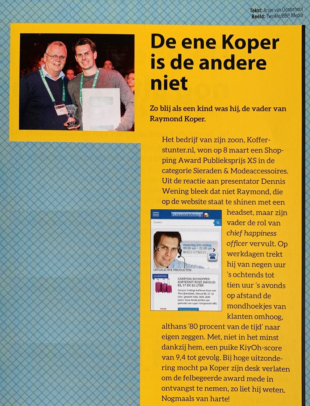 Artikel over de klantenservice van Kofferstunter Maart 2018